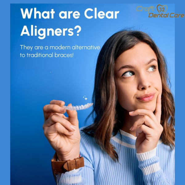 Clear aligners are a modern, comfortable solution to straighten teeth without traditional braces. They are nearly invisible, easy to remove, and customized for each patient’s smile. This treatment helps achieve proper alignment while fitting perfectly into daily life. At Craft 32 Dental Care, we focus on precision, comfort, and confident smile transformations.