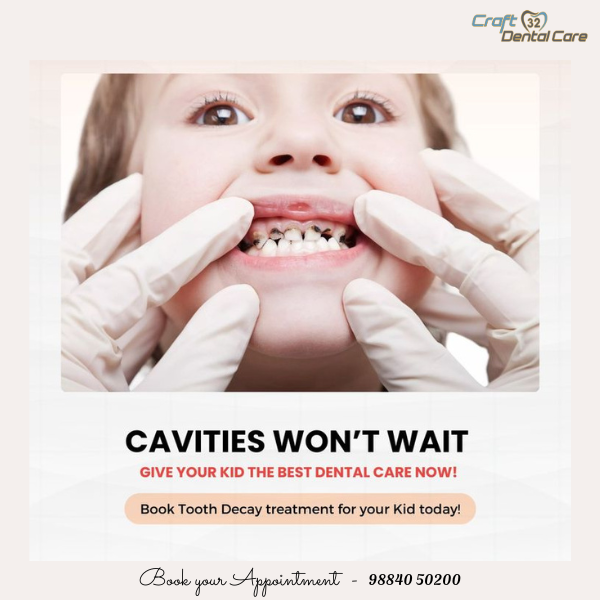Tooth decay treatment for children is carefully done at our clinic with a gentle and comfortable approach. We use advanced techniques and child-friendly methods to remove decay and restore the tooth with durable, natural-looking fillings. Our pediatric dental care ensures a pain-free experience, helping children feel relaxed during treatment. Regular check-ups and preventive care are also emphasized to protect young smiles. At Craft 32 Dental Care, we make every child’s dental visit positive and stress-free.