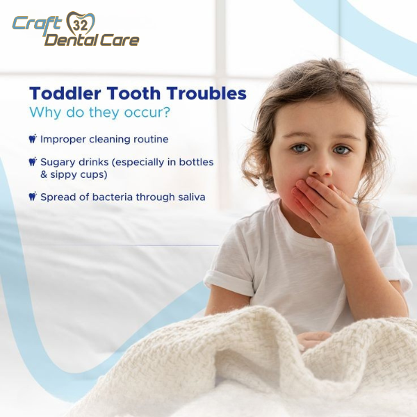 Healthy smiles start early! Many toddler tooth problems occur due to improper cleaning habits, sugary drinks, and bacterial spread through saliva. At Craft 32 Dental Care, we focus on early diagnosis, preventive guidance, and gentle child-friendly care to protect your little one’s smile. Our expert team helps parents build strong oral habits from the very beginning. Because every child deserves a healthy, happy smile! ✨